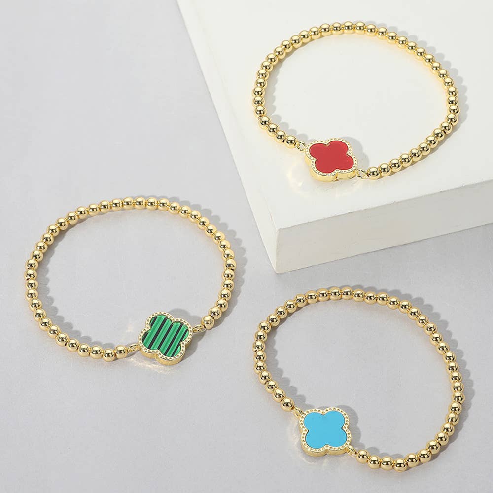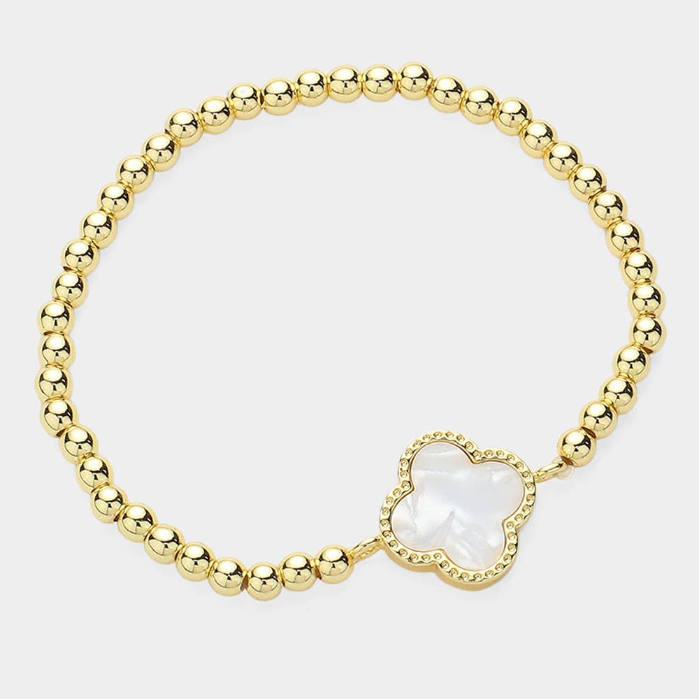 Quatrefoil Pointed Stainless Steel Ball Beaded Stretch Bracelet •