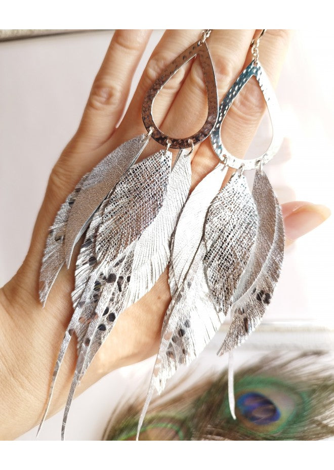 Make a statement with our Steffie Silver Leather Earrings — where effortless style meets free-spirited charm. Handcrafted with soft, lightweight leather, these earrings cascade with natural movement, bringing texture and edge to any outfit.