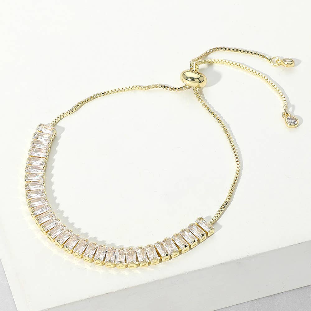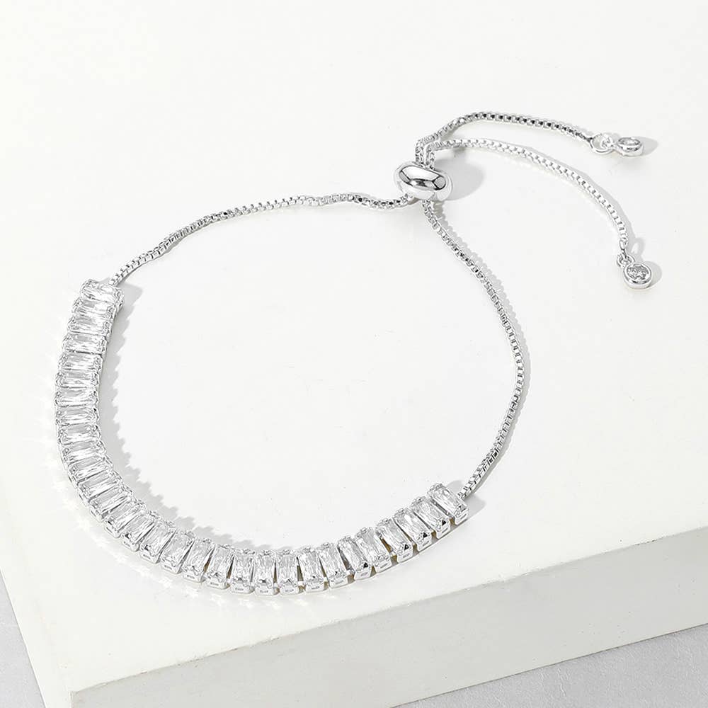 Stainless Steel Emerald Cut CZ Tennis Pull Tie Bracelet