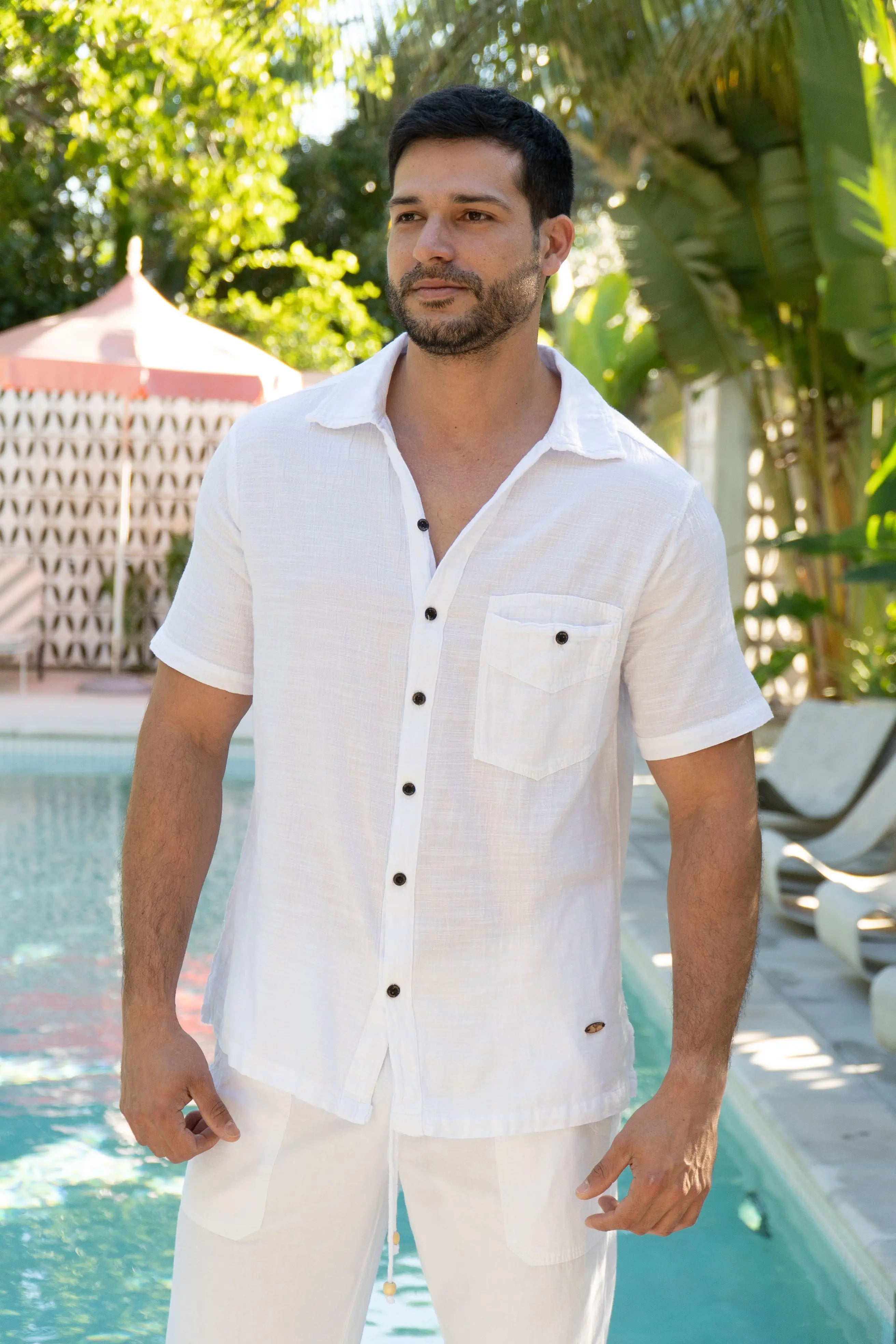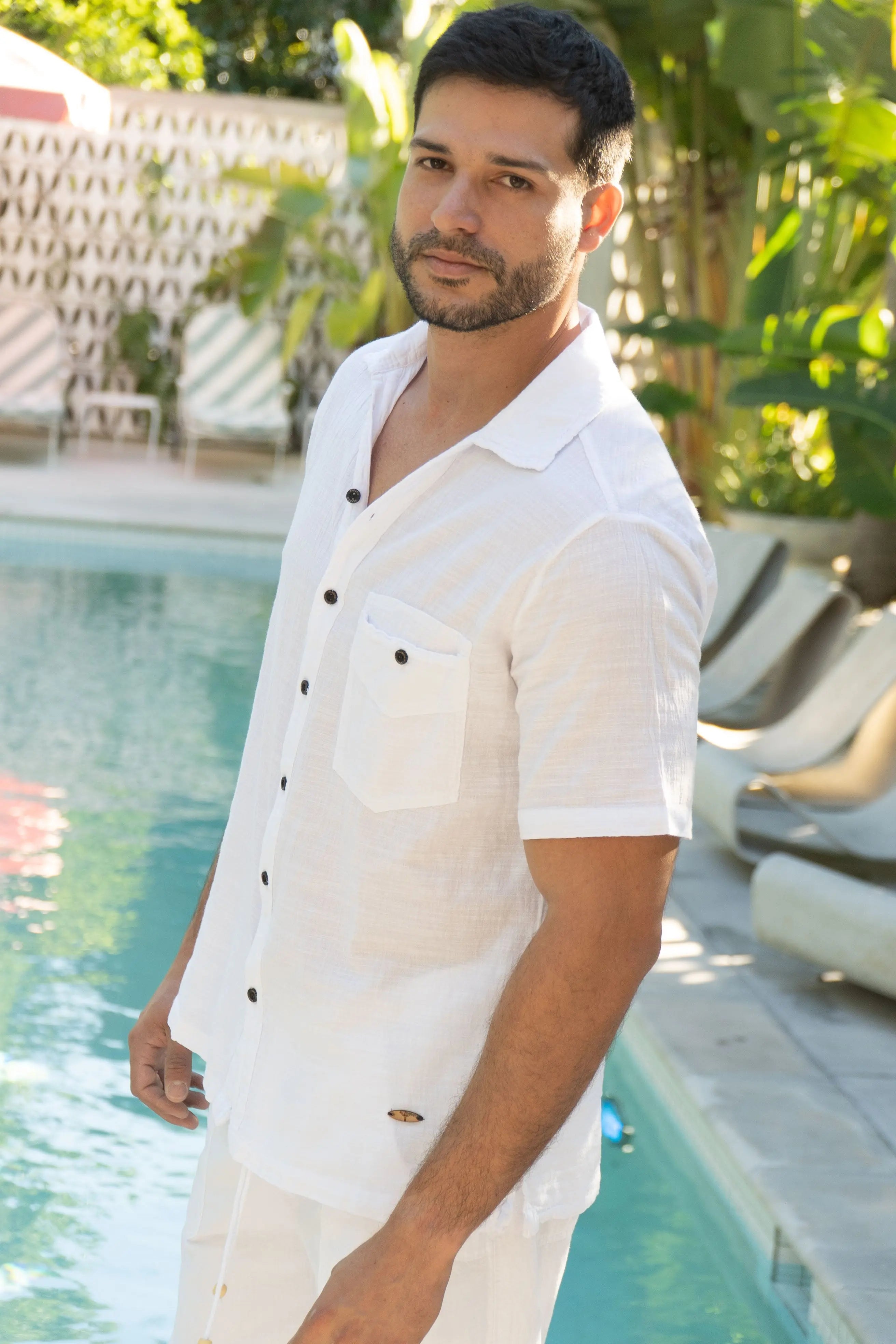 From the beach to the beach club. The Leo Button Down Shirt is made from a high quality cotton fabric and features a collar, front pocket detail, and centre front buttons.