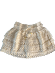 The perfect set for your next vacation! The Cosmo Skirt is made from a high quality crochet cotton fabric. It features an elastic waist with shorts underneath. Complete the look with the Jaci Top. Styling Tip: The beads can be removed for a more subtle look.