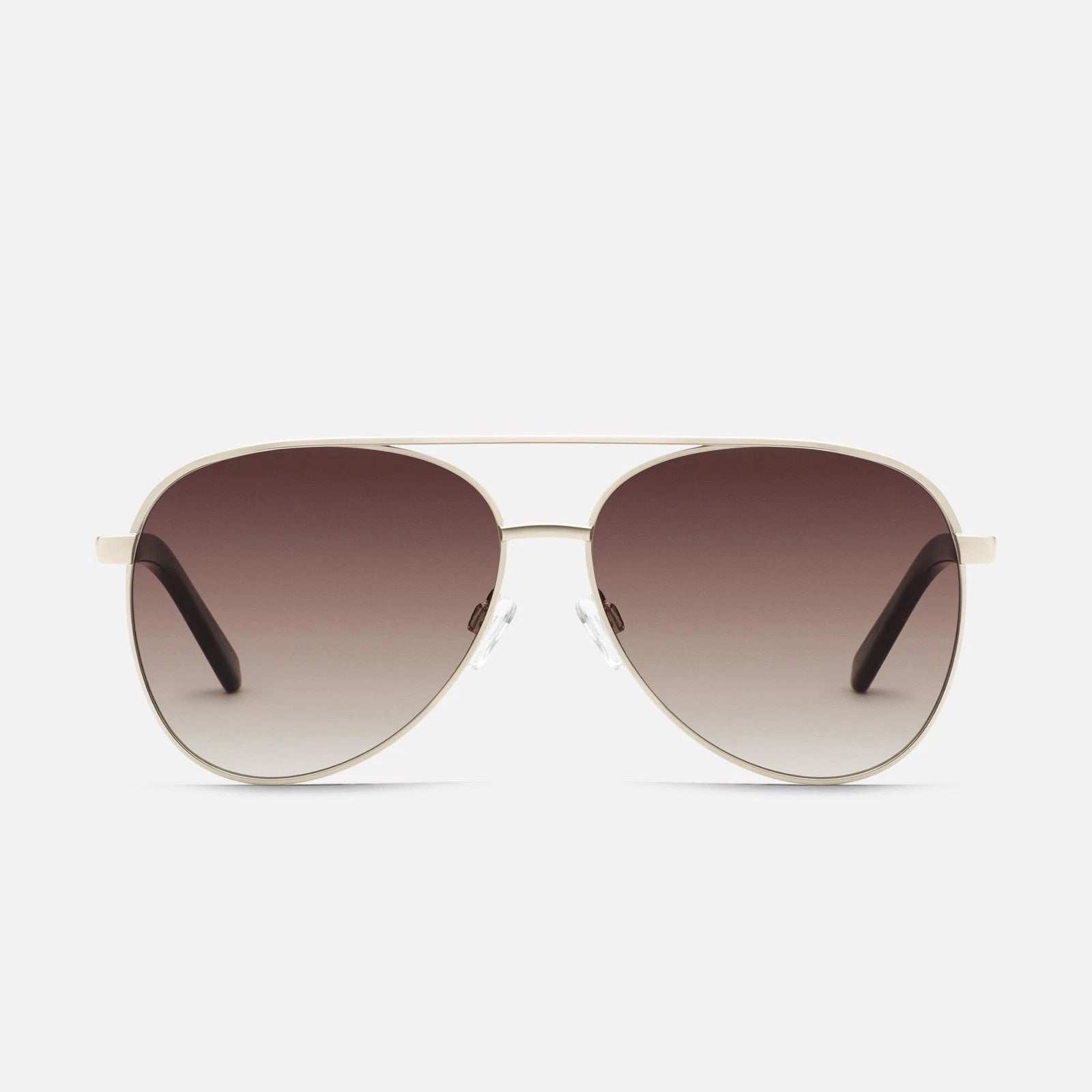 This pair is classically styled with a double bridge and adjustable nose pads for no-slip wear. 64mm lens width; 14mm bridge width; 137mm temple length Material: Metal, Stainless Steel 100% UV Protection