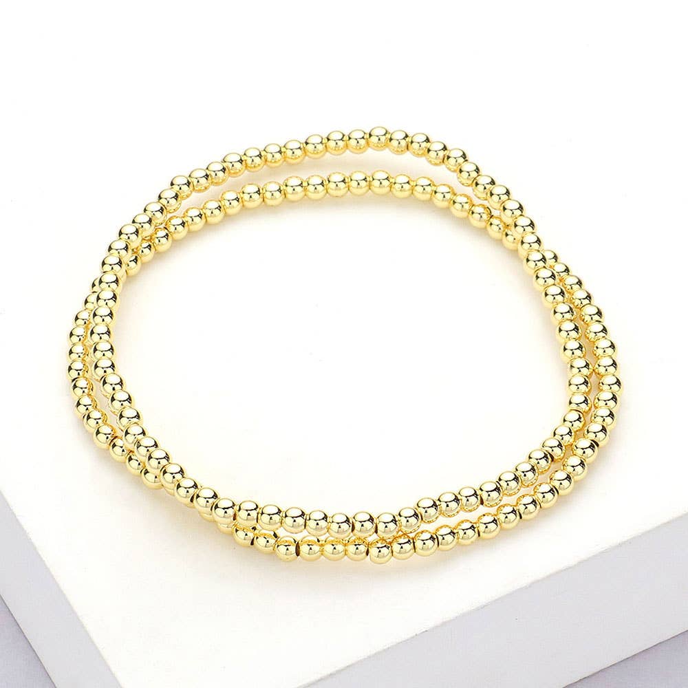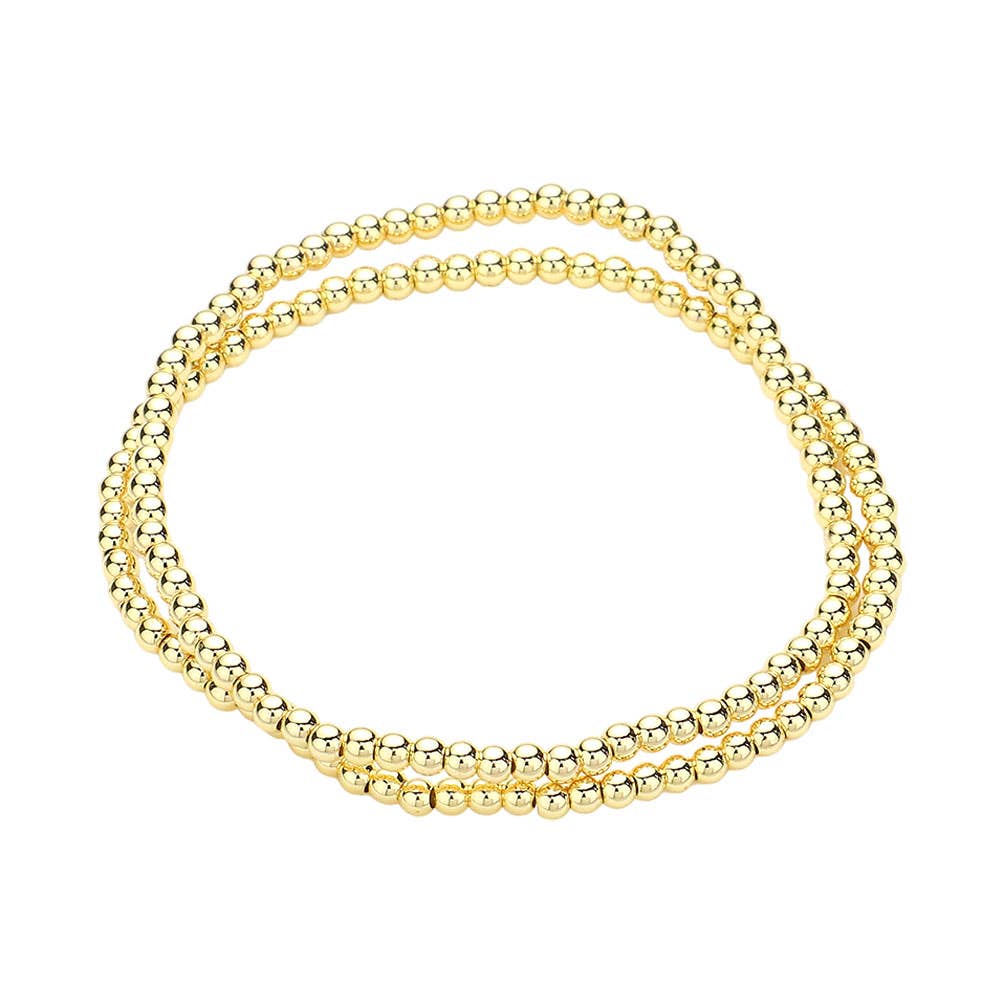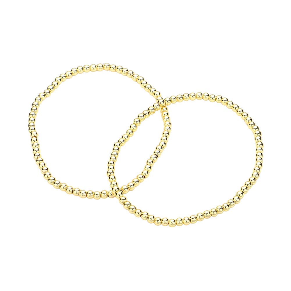 This 2-piece beaded stretch bracelet set features polished gold-tone beads for a sleek and timeless look. Lightweight and flexible, they’re perfect for stacking or wearing solo. A versatile accessory for everyday elegance or layering with other favorites.