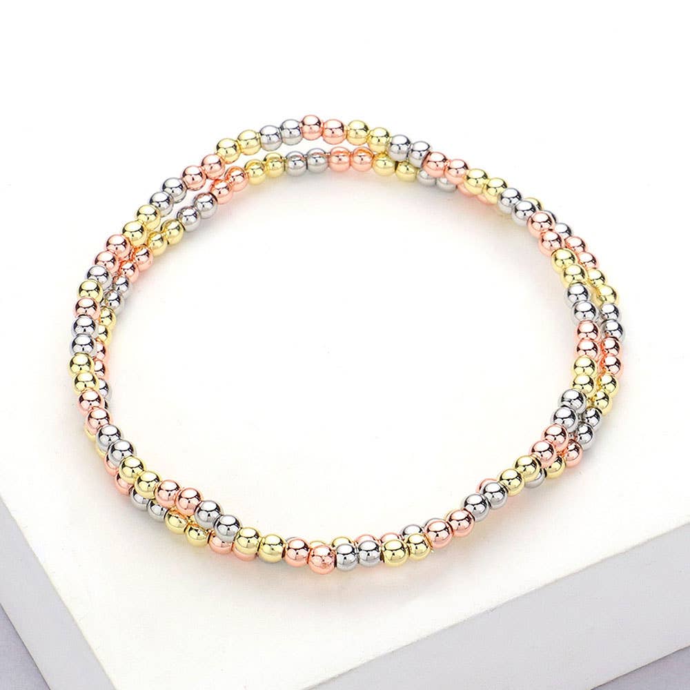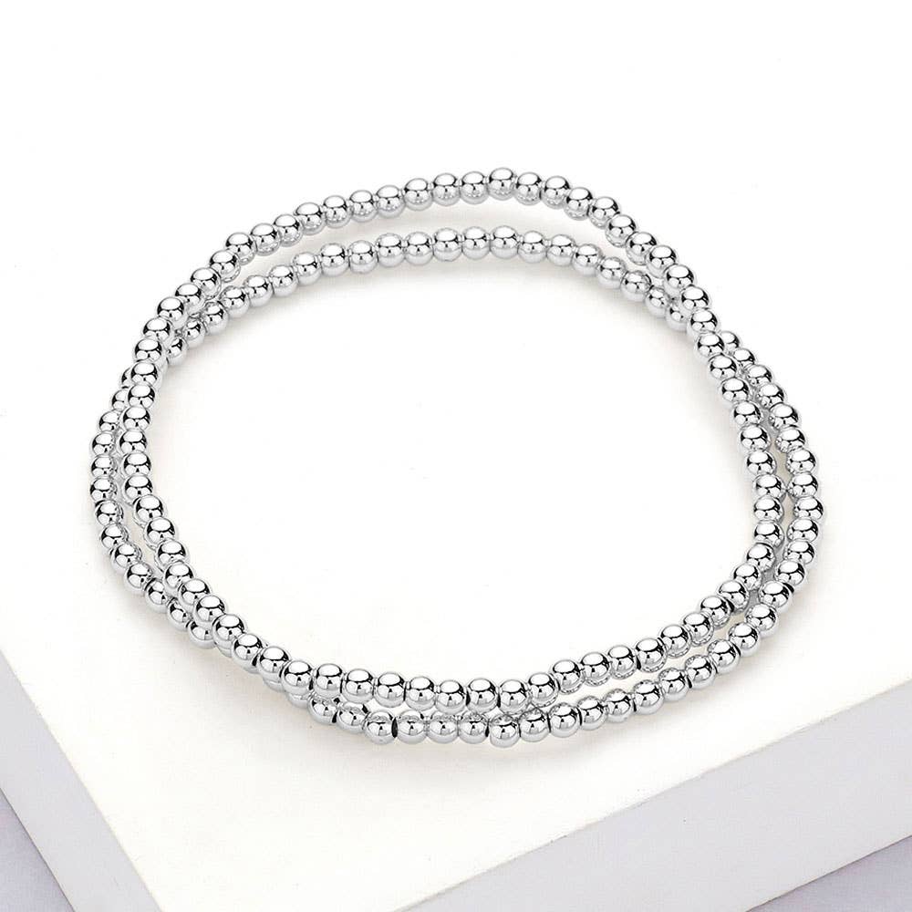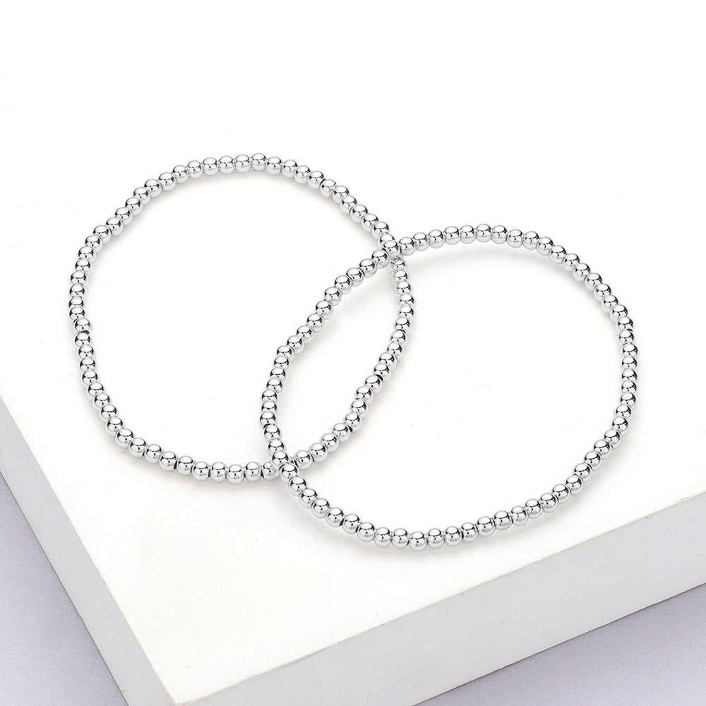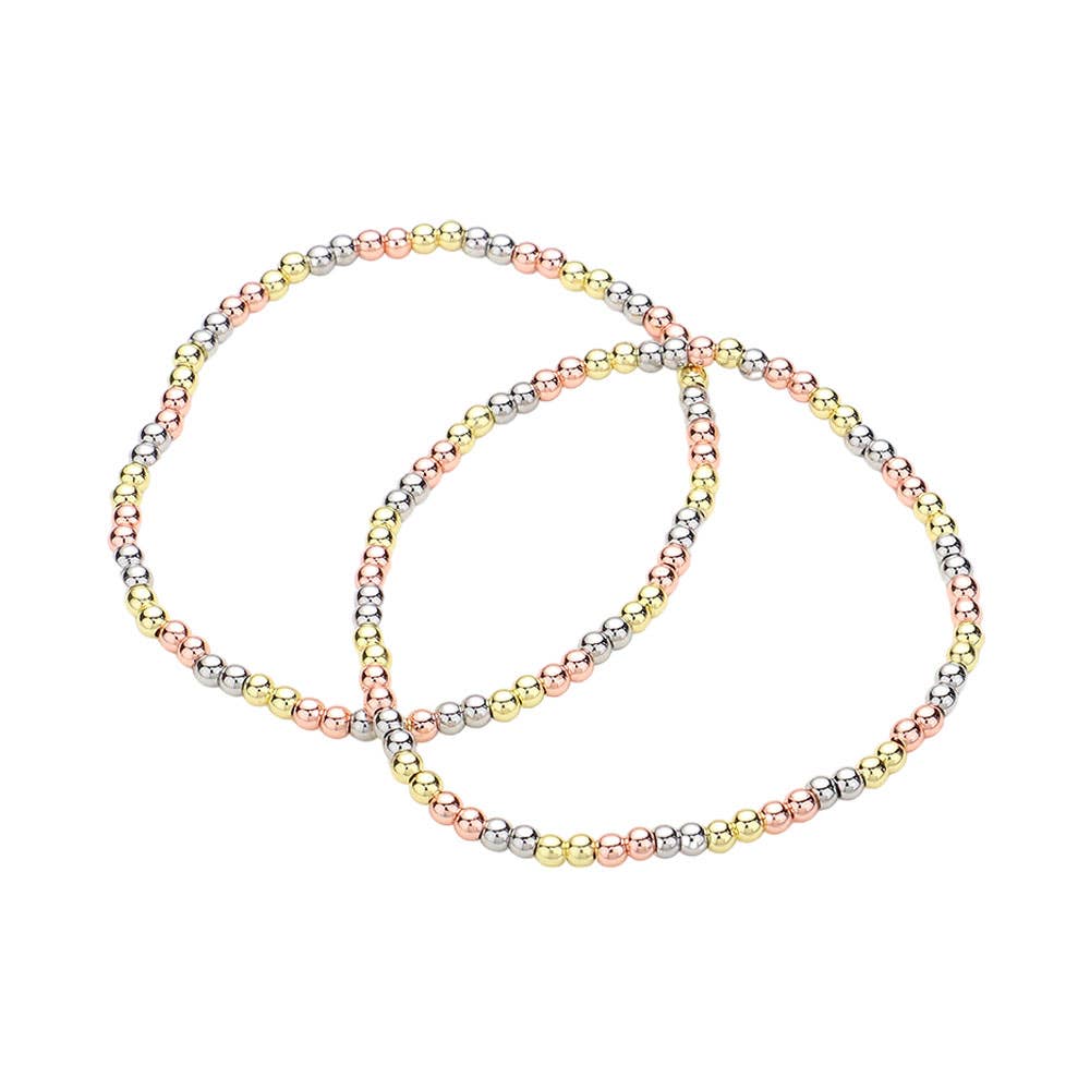 This 2-piece beaded stretch bracelet set features polished gold-tone beads for a sleek and timeless look. Lightweight and flexible, they’re perfect for stacking or wearing solo. A versatile accessory for everyday elegance or layering with other favorites.